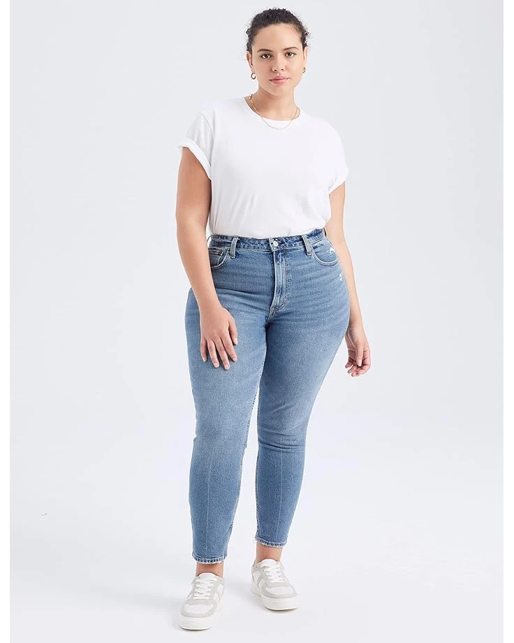 A high-rise waist, and Curve Love fit that is snugger in the waist and roomier in the hips and thigh makes the Abercrombie & Fitch® Curve Love Crease Skinny Jeans a classic look that you’ll love and pairs easily with your favorite top.
