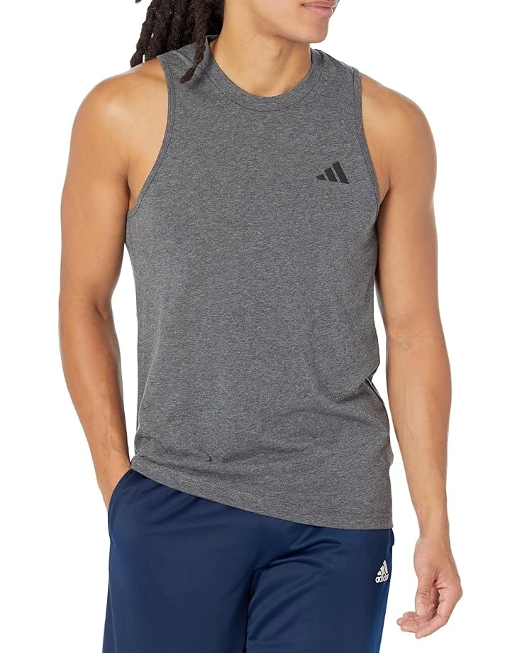 The primary materials that compose this product contain a minimum of 20 percent recycled content.SKU: #9818078Gear up for your intense workouts with confidence and comfort, wearing the adidas® Big & Tall Training Essentials Feel Ready Logo Sleeveless Tee.Slim fit.AEROREADY moisture-wicking fabric pulls sweat away from the skin and pushes it towards the outer fabric face for quick-drying comfort.Sleeveless construction with crew neck.Iconic three-bar logo print on the left chest.Straight hem.Pull-on style.70% recycled polyester, 30% cotton.Machine wash, tumble dry.Imported.Product measurements were taken using size 2XL Tall. Please note that measurements may vary by size.Measurements: