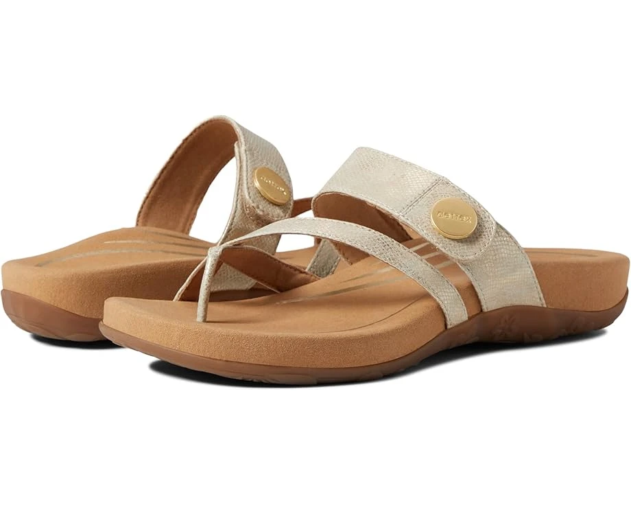 Embrace the warm-weather days ahead with the cute and comfortable aetrex® Izzy Sandals. Summer sandals with built-in arch support to help keep your body biomechanically aligned for all-day comfort and support.SKU: #9359050Aetrex® arch placement may feel a bit further back, this position is proven to help relieve heel/arch pain & plantar fasciitis. This arch placement is backed by research, Dr. recommended and customer approved.aetrex® Orthotic System provides arch support that helps stabilize and align the feet, and assists at relieving common foot pain.Synthetic uppers with a hook-and-loop strap for an adjustable fit.Supersoft microfiber-lined footbed for a comfortable slip-in feel.Textured synthetic outsole for durable traction and support.Imported.Product measurements were taken using size EU 39 (US Women’s 8.5), width M (B). Please note that measurements may vary by size.Measurements: