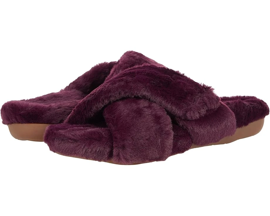 Begin or end your day in luxurious comfort with the ultra-soft and cozy Aetrex® Penelope slipper.SKU: #9562734Aetrex® arch placement may feel a bit further back, this position is proven to help relieve heel/arch pain & plantar fasciitis. This arch placement is backed by research, Dr. recommended and customer approved.Open toe slipper with hook-and-loop adjustable straps.Plush, faux fur upper and lining.Faux fur-wrapped memory foam insole.Durable rubber outsole, suitable for indoor/outdoor use.Imported.Product measurements were taken using size EU 40 (US Women’s 9-9.5), width M (B). Please note that measurements may vary by size.Measurements:
