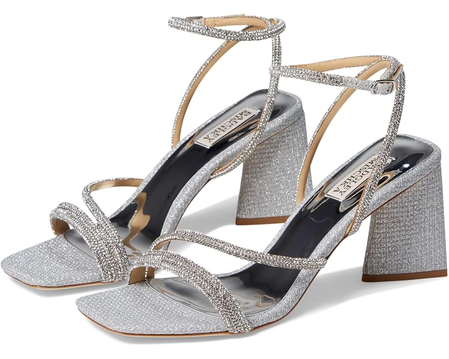 Sparkle up your special day attire by pairing your look with the Badgley Mischka® Freedom Heels.SKU: #9871748Glitter-embellished textile upper.Leather lining.Lightly padded synthetic footbed.Buckle ankle strap closure.Open square toe.Sculptural block heel.Latex midsole.Leather outsole.Made in Spain.Product measurements were taken using size 7, width M. Please note that measurements may vary by size.Measurements: