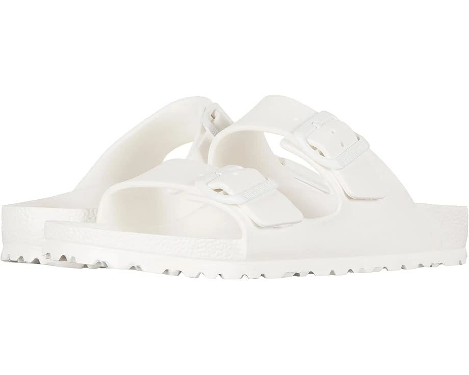 Go for a classic silhouette with a ready-for-anything attitude with the Birkenstock® Arizona EVA sandal.SKU: #8184196No need to ponder−take classic appeal with you anywhere you go when you’re rockin’ the Arizona Essentials sandal!EVA upper is a high-quality, very light, elastic material with very good cushioning. As a result, it smooths out slight irregularities in the floor and ensures that every step is softly cushioned.Ultralight and high-quality EVA upper is highly flexible and odor neutral.Two top straps with adjustable buckle closures.Sandal is ultralightweight, waterproof, and washable.Anatomically shaped EVA footbed.EVA-lined interior. Ultra-lightweight and shock-absorbing, one-piece EVA outsole.Raised toe bar is designed to encourage the natural gripping motion of your feet, exercising your legs and aiding circulation.Washable.Neutral heel profile and deep heel cup keeps the natural padding of your foot where it belongs, under the heel, distributing your body weight more evenly.Anatomically shaped EVA footbed for superior support and underfoot comfort. Flexible EVA outsole offers lightweight, shock absorbing support with lasting durability.Heat Warning – Cork footbeds or EVA soles can be damaged by exposure to concentrated heat. Do not leave your footwear in direct sunlight or in closed cars on warm days. If your footwear becomes wet, allow it to air dry slowly, away from direct heat.Made in Germany.Product measurements were taken using size EU 38 (US Women’s 7-7.5), width Narrow. Please note that measurements may vary by size.Measurements: