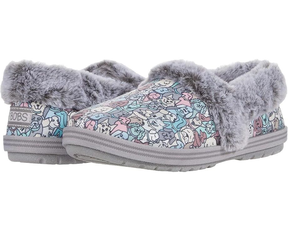 For information on how BOBS contributes to the community, please visit the About page.SKU: #9301260A plush faux-fur collar, colorful cartoon dog print, and slip-on design make the BOBS from SKECHERS® Too Cozy – Pooch Parade slipper the perfect style to keep you warm and comfortable this cold-weather season.Woven fabric upper features a smooth finish and allover print.Rounded toe.Signature logo accent at the heel counter.Warm faux-fur lining.Memory Foamâ„¢ cushioned insole for all-day comfort.Low profile, shock-absorbing midsole design. Flexible outsole provides traction.Imported.Product measurements were taken using size 9, width B – Medium. Please note that measurements may vary by size.Measurements: