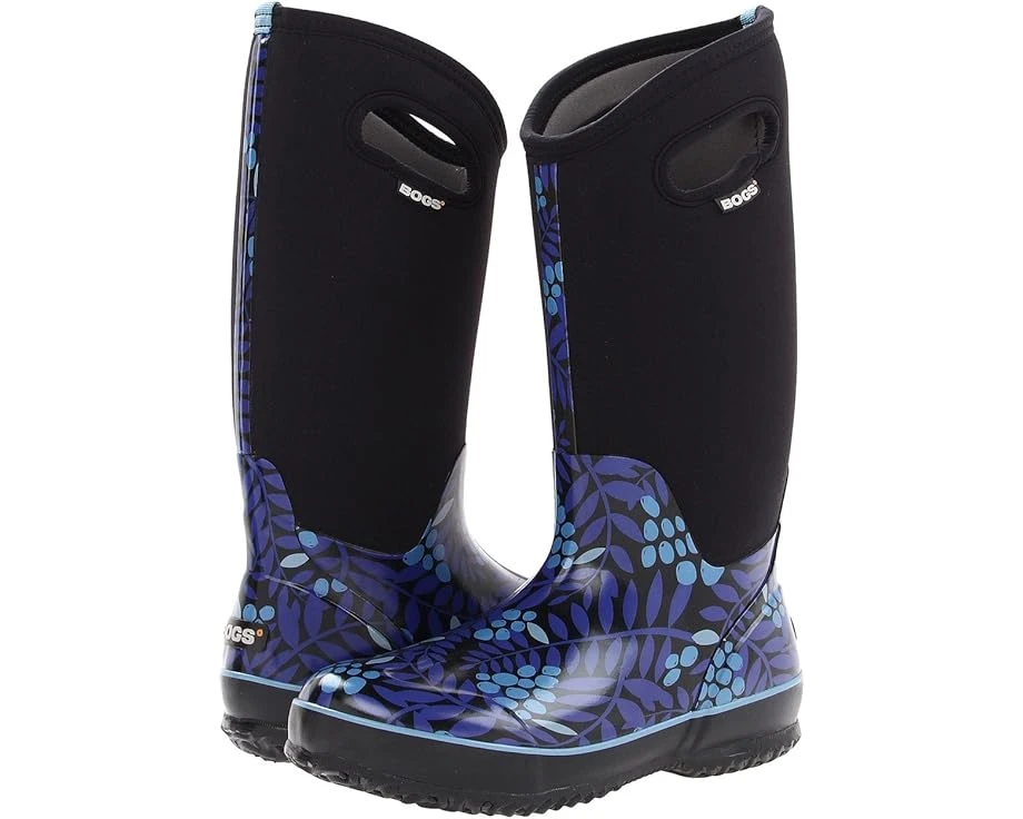 Winter’s blustery weather won’t have you running for home with frozen toes when you’re wearing the warm and comfortable protection of the Bogs® Classic Tall snow boot.SKU: #8177889Classic styles include the Pansies, Triangles, Butterflies, and Winterberry boots.100% waterproof. 7 mm waterproof Neo-Tech™ insulation.Temperature Rating: -40°F/-40°C.Natural, hand-lasted rubber over a four-way stretch bootie. Pull-on style with dual side handles. Max-Wick™ moisture-wicking lining helps keep feet stay drier.Dual-density EVA insole features DuraFresh anti-odor protection for a fresher foot environment. Nonmarking, nonslip rubber outsole with a self-cleaning tread. Imported. Product measurements were taken using size 9, width B – Medium. Please note that measurements may vary by size.Measurements: