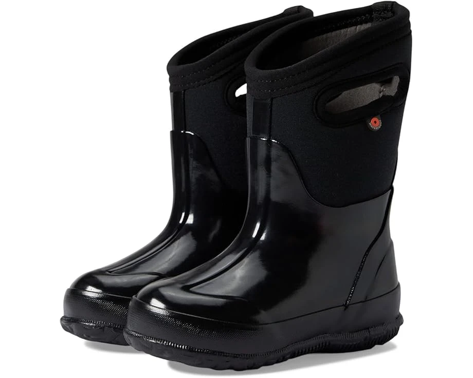 Note: The sizing info on the box will differ slightly from our sizing (Ex: Bogs 7I = 7 Toddler, Bogs 1K = 1 Little Kid). Please select your child’s regular size when ordering.SKU: #7690641Bring on the rain or mud and keep your little one dry in the dependable Bogs® Kids Classic High Handles.100% Waterproof.Constructed with 7mm Neo-Tech™ waterproof insulation.DuraFresh™ natural bio-technology activates to fight odors.Bogs Max-Wick™ evaporates sweat to keep feet dry.Easy on handles.Durable, hand-lasted rubber over a four-way stretch inner bootie.Self-cleaning rubber outsole.BLOOM, algae-based EVA footbed that helps clean polluted water habitats.Comfort rated to -30ºF/-34°C.Reflective temperature rating mark on heel.Imported.Please be advised that a white wax film may appear on the surface of the rubber boots and the brand states that it can be wiped off with a damp cloth. This “blooming” effect is not a defect. Blooming is caused when the boots are exposed to extreme temperatures or temperature swings and the wax helps prevent the rubber from weathering.Product measurements were taken using size 13 Little Kid, width M. Please note that measurements may vary by size.Measurements: