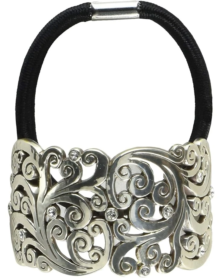 Inspired by The Alhambra, a spectacular building constructed in Spain in 1348 A.D., this little “structure” will support your ponytail in style. SKU: #9313876Part of the Brighton® Madrid Lace Collection.Pony tail holder with Swarovski crystal and hammered detail with silver-tone finish.Imported.Please note, the hardware color and interior lining may differ from the color shown in the photo.Measurements: