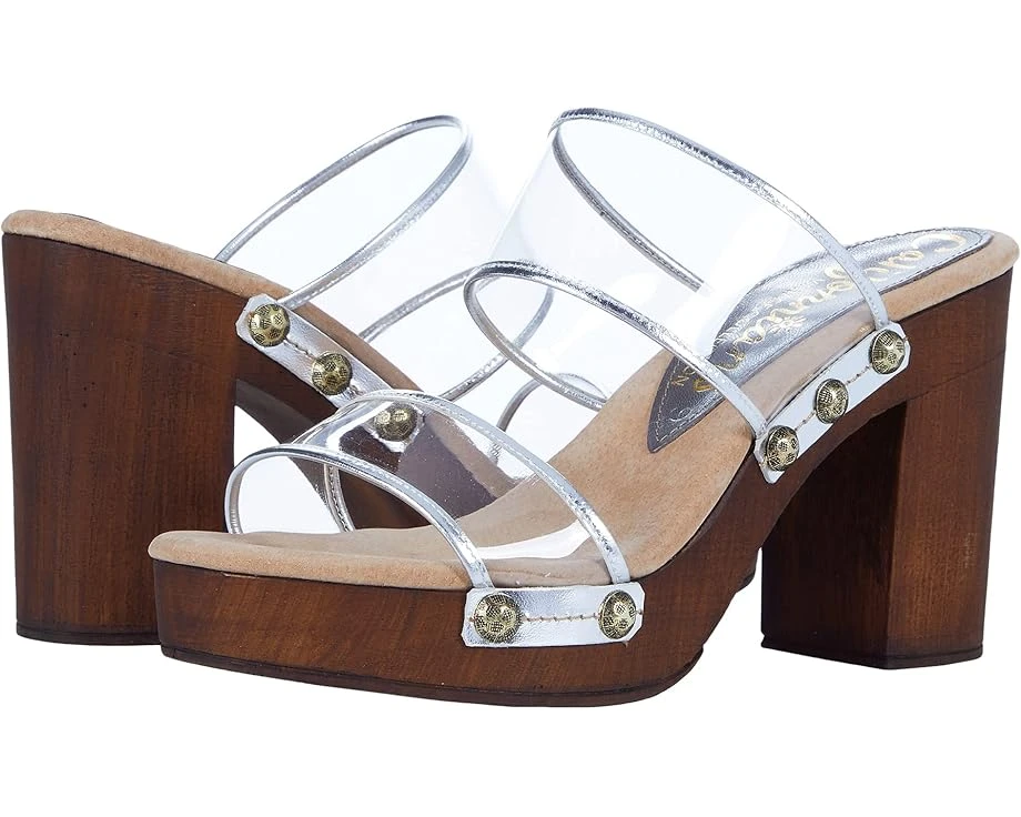 Sizing: True to size. If you are in between sizes, we recommend ordering the size up. For example, if you are a size 7.5, order size 8.SKU: #9550681Elevate your fashion with the sleek Californians Delilah heels.Vinyl and leather upper.Unlined Clear straps.Suede-wrapped 6mm Foam Insole.Cushy polyurethane midsole.Textured polyurethane outsole.Made in USA with domestic and imported materials.