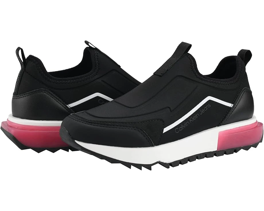 Crafted for all-day comfort and a casual style, the Calvin Klein® Merlena Sneakers are something that you would not want to miss out on.SKU: #9802951Breathable textile and man-made upper and lining.Cushioned foam footbed.Easy slip-on style with pull loops.Round toe silhouette.Synthetic midsole.Durable traction outsole.Imported.