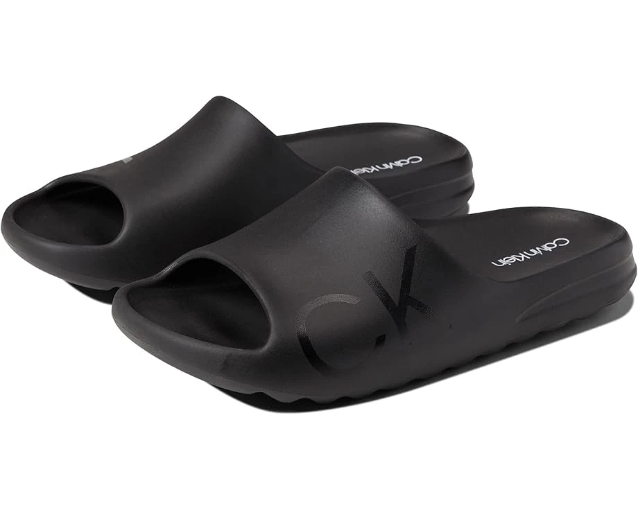 The Calvin Klein® Ocean active slippers look stylish and feel comfy. They are perfect for everyday wear.SKU: #9784256Man-made upper, lining, and insole.Slide-on style.Open round toe.Elevated flat silhouette.Broad toe strap with branding detail.Man-made outsole.Imported.Product measurements were taken using size 10, width M. Please note that measurements may vary by size.Measurements: