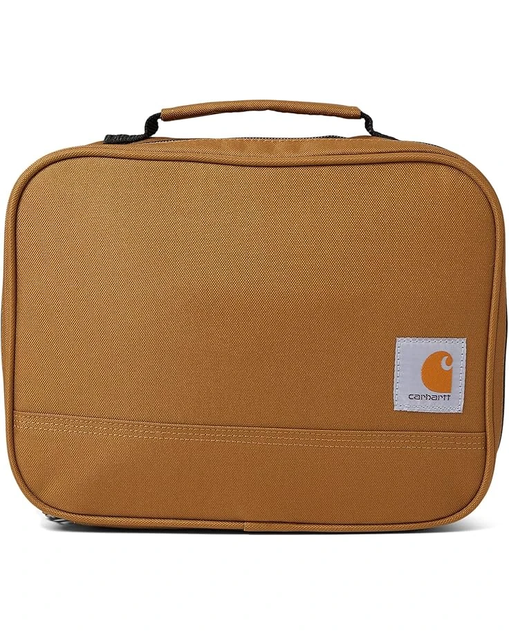 Carry food in the heavy-duty, water-repellent CarharttĀ® Insulated 4 Can Lunch Cooler.SKU: #9790137Compact and stylish lunch cooler made of premium quality 500 denier polyester with Rain DefenderĀ® DWR coating that keeps the box dry. Sturdy top haul handle.Zippered top closure. Fully-insulated main compartment that keeps the contents cold for more than eight hours.Interior mesh pocket for added convenience. Polyester-lined interiors. Signature brand name logo patch on the front. Imported. Measurements: