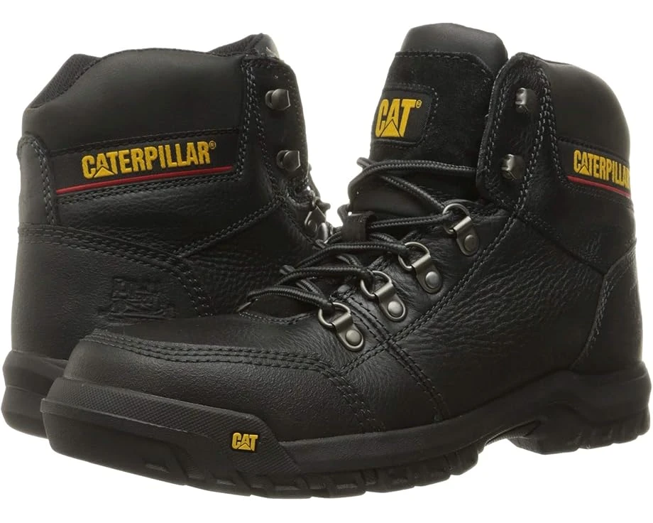 The steel toe protection and comfortable support of the Caterpillar® Outline ST boot will make sure you perform at your best every work day.SKU: #8789098Style numbers: P90800 (Black), P90802 (Dark Gull Grey), P90801 (Honey Reset) and P90803 (Seal Brown). Leather upper.Steel toe work boot. Padded collar for added comfort. Traditional lace-up design with sturdy metal hardware for a secure fit. Nylon mesh lining provides airflow for added breathability. Cushioned footbed for excellent underfoot comfort and support. Steel toe rated: ASTM F2413-11 I/75 C/75, which is the highest possible strength for impact and compression.EH rated ASTM F2413-05 I/75 protects the wearer against open circuits up to 600 volts in dry conditions.Durable rubber outsole has a high traction design and is oil and slip resistant. Pass MARK II Testing.Imported. Product measurements were taken using size 9, width D – Medium. Please note that measurements may vary by size.Measurements: