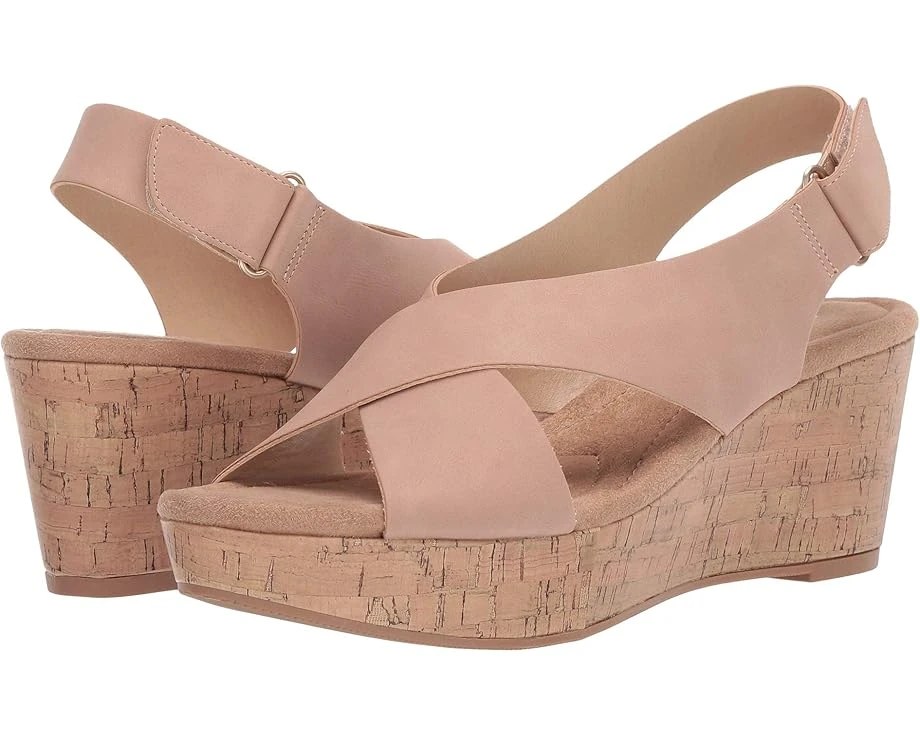 Keep your everyday style chic and playful in the CL By Laundry® Daylight sandals featuring a synthetic leather upper on a cork-wrapped heel and platform. SKU: #9416968Hook-and-loop closure.Synthetic lining with cushioned footbed.Synthetic outsole.Imported.Product measurements were taken using size 10, width M. Please note that measurements may vary by size.Measurements: