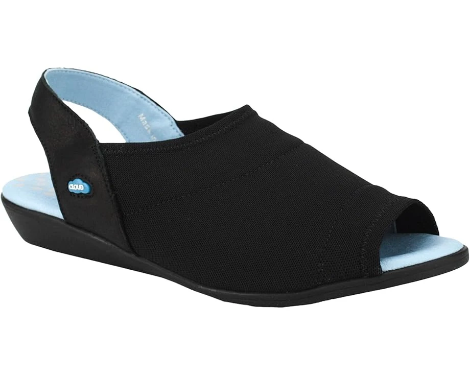 The CLOUD® Cuteness features a leather and elastic textile upper, slip-on construction with elastic slingback ankle strap, peep toe silhouette, and flexible rubber outsole. SKU: #9515960Odor fighting and moisture wicking lining and insole. Extra cushioned insole. Textile midsole. Made in Portugal.Product measurements were taken using size 39 (US Women’s 8-8.5), width M. Please note that measurements may vary by size.Measurements:
