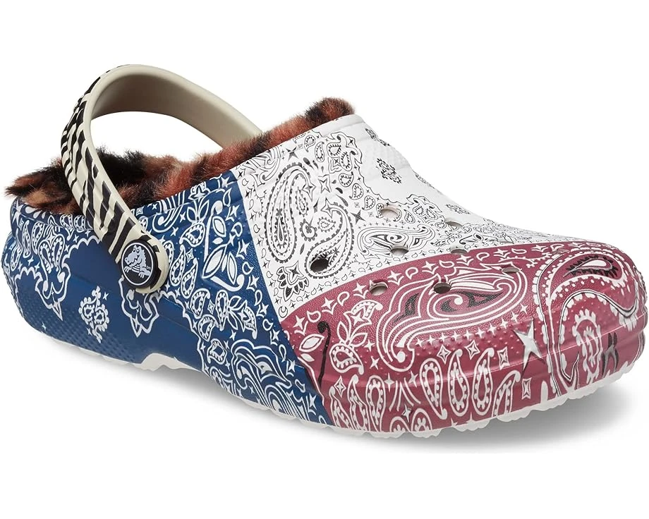 Stay comfortable all day long wearing the Crocsâ„¢ Kids Zappos Print Lab: “Gone Wild” Classic Lined Clog (Little Kid/Big Kid). SKU: #9780662EVA upper, lining, and footbed. Light and easy to wear clogs with a fuzzy liner. Allover eye-catching print. Dual Crocs Comfortâ„¢.Slip-on style. Round toe. Pivoting heel straps for a more secure fit.Customizable with Jibbitzâ„¢ charms.Special Collection: Heritage Classic.Rubber outsole with added traction and durability. Imported.