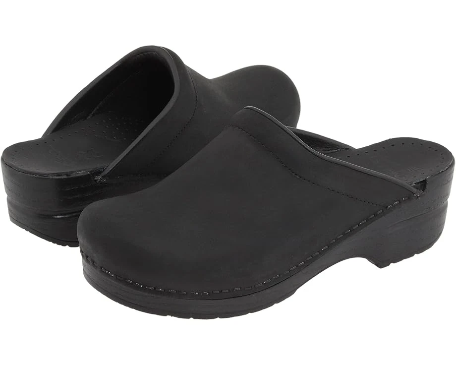 You may be more comfortable sizing downward for open-back models (I.E., if you are a US size 6.5, you may want to choose EU size 36).SKU: #121211The Dansko® Sonja is the most traditional open-back style that takes on the critical role of providing comfort to those in the nursing, hospitality, and other occupational fields. Oiled Leather: heavily oiled, matte-finish leather with optimal pliability and moisture resistance. Oiled Nubuck has the same closely napped, silky feel as Nubuck, but with noticeably more oil tanned into the leather. Naturally occurring blemishes are slightly more visible in these areas and suggest a more rugged appearance. Latigo leather has a smooth, tight grain and semi-gloss to transparent finish.Roomy Thermoplastic toe box provides durable reinforcement and toe protection and allows toes to move comfortably.Vegetable tanned leather lining allows the shoe to mold to the natural shape of the foot.Poliyou® foam in the footbed absorbs and evaporates perspiration.PVC inner frame provides stability and reduces torque and pronation.Polyurethane outsole provides shock absorption and flexibility, withstands surfaces of extreme heat and cold, and protects feet, legs and back during long hours of standing or walking.Dansko®’s Stapled Clog Collection proudly carries the Seal of Acceptance from the American Podiatric Medical Association.Product measurements were taken using size EU 41 (US Women’s 10.5-11), width Regular. Please note that measurements may vary by size.Measurements: