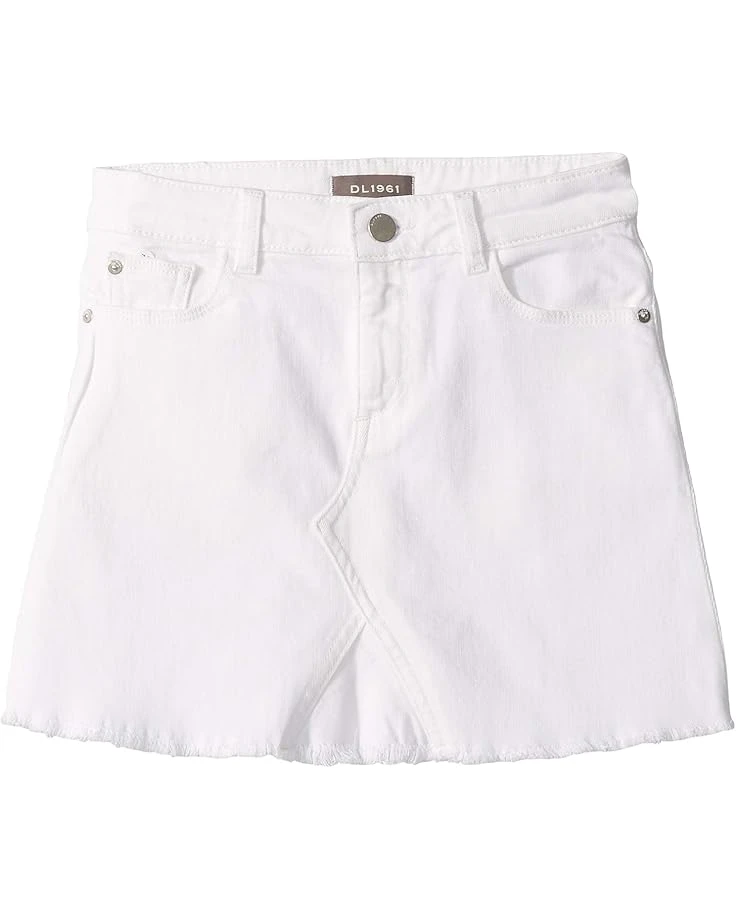 Jenny Skirt in Palmetto Bay.Classic A-line silhouette boasts a medium rise and offset seams for a unique look.Palmetto Bay is a white wash on a soft stretch denim.Five-pocket design.Front zip-fly closure.Tonal topstitching. Frayed straight hem.67% cotton, 31.5% Tencel® lyocell, 1.5% Lycra®.Machine wash cold and tumble dry low.Imported.Product measurements were taken using size 10 Big Kid. Please note that measurements may vary by size.Measurements: