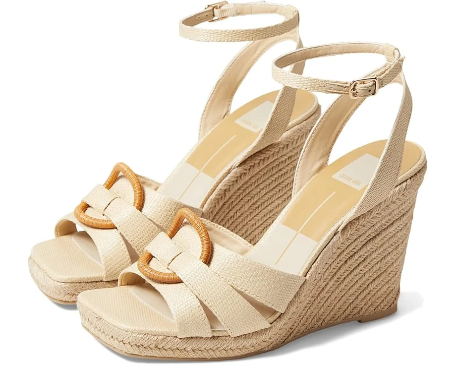 Featuring a square toe design and wedge heels, the Dolce Vita® Maze Heels keep your fashionable look on point.SKU: #9863320Leather upper.Synthetic lining and insole.Ankle straps with buckle closure.Strap detailing on the upper.Braided detailing on the heels.Synthetic outsole.Imported.Product measurements were taken using size 9, width M. Please note that measurements may vary by size.Measurements: