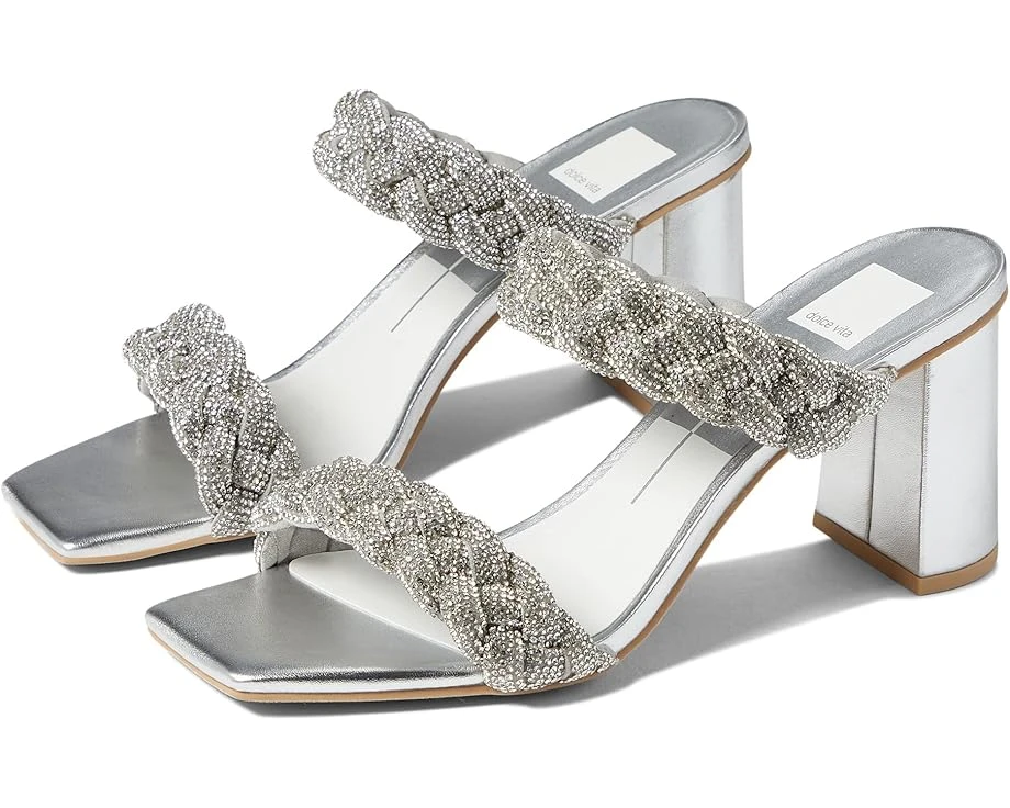 Make a fashion statement wearing the Dolce Vita® Paily Rhinestone heels to your ensemble.SKU: #9828796Textile upper.Textile and synthetic lining and insole.Slide-on style.Open square toe.High block heel.Braided vamp and toe straps with rhinestone accents.Textile and synthetic outsole.Imported.Product measurements were taken using size 9, width M. Please note that measurements may vary by size.Measurements: