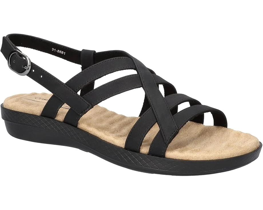 Step out stylishly wearing the chic and classy Easy Street® Lobo Sandals.SKU: #9890486Faux leather upper.Fabric lining.Heel-to-toe comfort wave padded faux leather insole.Strappy silhouette design.Buckle closure.Slingback strap with stretch for fit features.Wedge heel.Designed with style and built for all day comfort.Lightweight and flexible synthetic rubber outsole.Imported.Measurements: