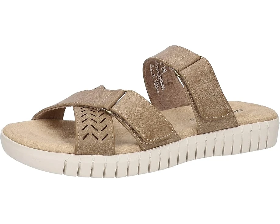 Style your summer outfits in the cozy Easy Street Patricia sandals with a slide-on comfort.