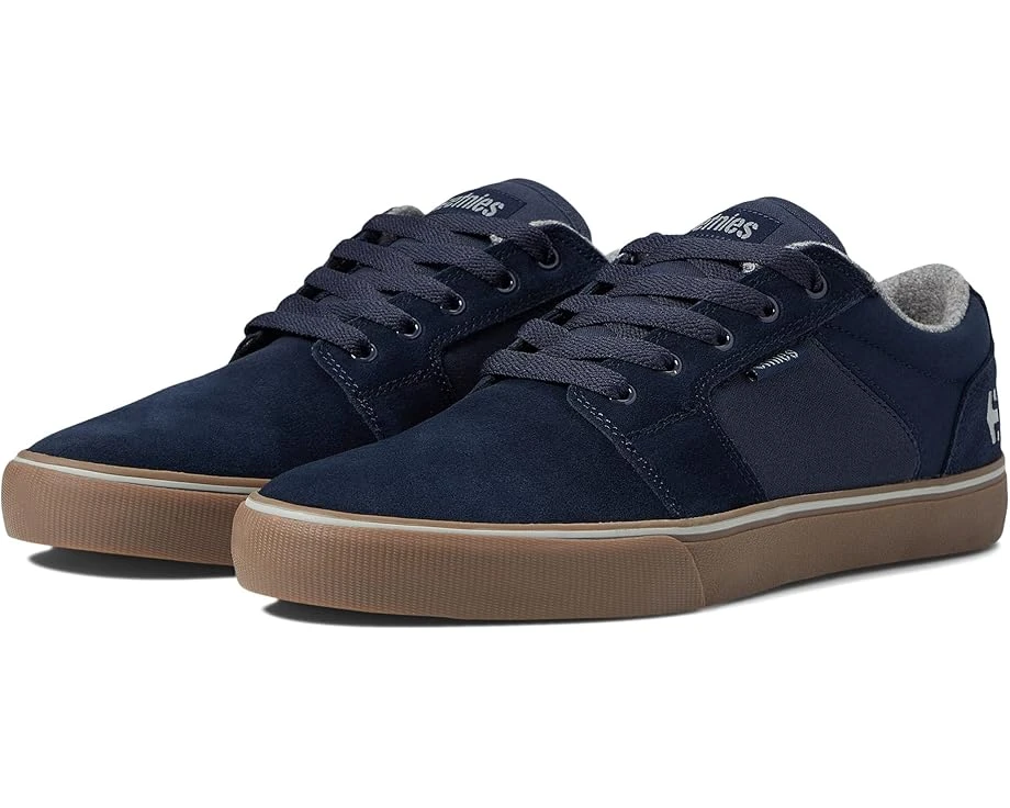 Lead the charge and start crushin’ it at the park with the durable upper and sleek profile of the etnies® Barge LS skate shoes.SKU: #7846799Skateboard shoes with uppers of suede and tough canvas.Minimal etnies logo branding for a clean, uncomplicated look.Thinned-out, lightly padded tongue and collar.Soft textile lining helps wick away moisture.STI Foam Lite 1 footbed provides superior comfort.Vulcanized construction for enhanced board feel.Durable 400 NBS rubber outsole.Imported.Product measurements were taken using size 10, width D – Medium. Please note that measurements may vary by size.Measurements: