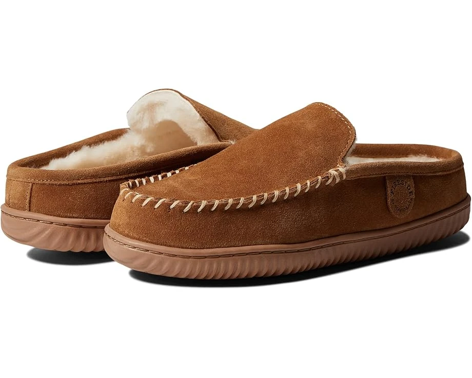 Complement your everyday chic look wearing the FIRESIDE by Dearfoams® Gold Coast slippers that keep your feet warm and cozy.SKU: #9680206Leather upper.Shearling or real fur lining.Leather insole.Slip-on style.Round toe with tonal woven detail.Flat silhouette.Branding detail on the collar.Synthetic outsole.The slippers contain real dyed fur of sheep originated from Australia.Imported.Measurements: