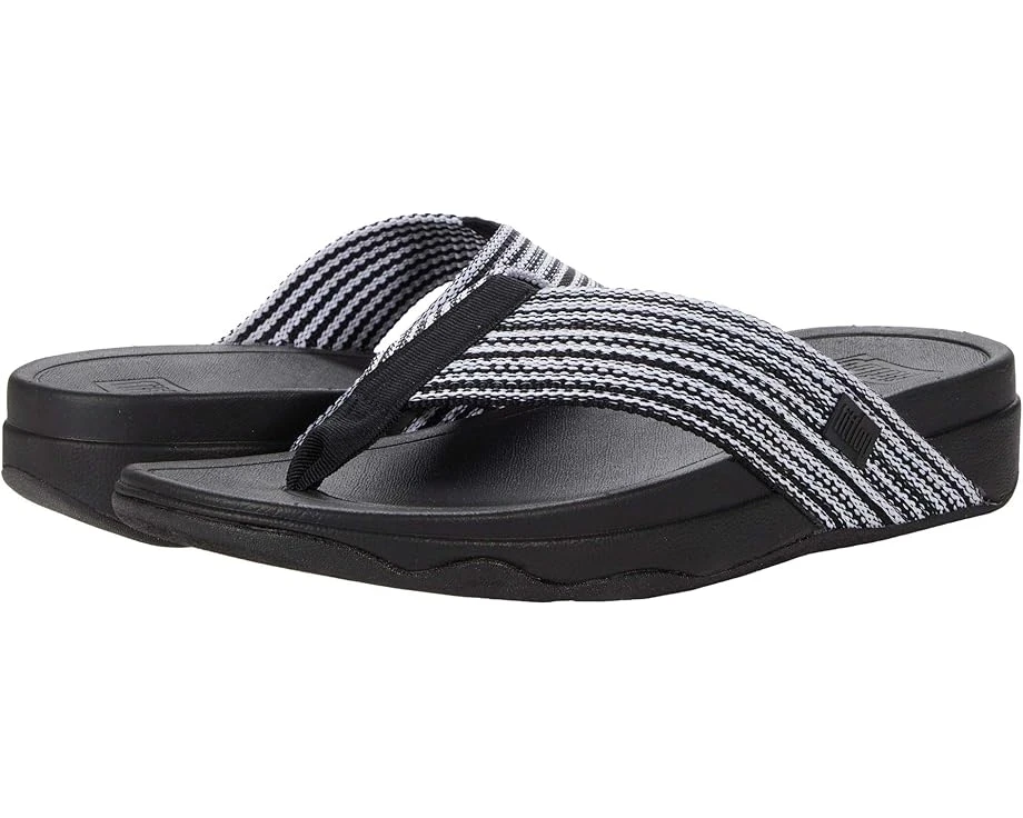 Click here to learn more about the biomechanically engineered, ergonomic FitFlopÂź footbed.SKU: #8481174OPTIMAL FLIP-FLOPS: The FitFlopâą Surfa and sandy beaches are a match made in heaven, featuring a soft fabric upper in a thong sandal silhouette and our sophisticated Microwobbleboardâą technology.SLIP-ON STYLE: Simple and modern flip flops feature an easy slip-on construction along with a toe post and an open back for quick wear and removal, great for on the go occasions or lazy days by the pool.QUALITY MATERIAL: FitFlopâą Surfa Sandals boast a soft fabric upper, a breathable and lightly padded microfiber lining, and a contoured footbed and added arch support for maximum comfort and support.ERGONOMIC BUILD: These sandals feature a triple-density EVA midsole with sophisticated Microwobbleboardâą technology as well as a textured synthetic outsole that delivers long-lasting durability on many surfaces.EVERYDAY NEUTRALS: Available in multiple sizes for women with 8 neutral color options, great for everyday wear and to pair with your spring or summer outfit.Imported.Please click here for a video about Microwobbleboard technology.Product measurements were taken using size 8, width M (B). Please note that measurements may vary by size.Measurements: