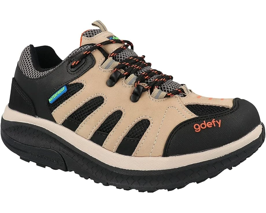 Explore the great outdoors in comfort and style with the Gravity Defyer® Radius hiking shoe. From top to bottom it’s a durable shoe that will help ease the pain and discomfort of a long hike on the trail.SKU: #9623679The Radius has a supportive, contoured footbed atop the clinically demonstrated pain-relieving** VersoShock® sole. Fine-crafted, stylish and rugged, the Radius is perfect for the long-distance or novice hiker. Waterproof upper with front-rolling design that helps reduce foot stress and plantar fasciitis by isolating bones and joints from harm.Traditional lace up closure for adjustable fit.Roomy toe box intended to improve circulation by relieving stress on your toes and arches.Waterproof membrane lining and removable insole to accommodate custom orthotic support.Plush, polyurethane footbed and EVA midsole.Polyurethane, EVA and rubber outsole.**In a 2017 double-blind study by Olive View UCLA Medical Center.Imported.Product measurements were taken using size 8.5, width M. Please note that measurements may vary by size.Weight of footwear is based on a single item, not a pair.Measurements:
