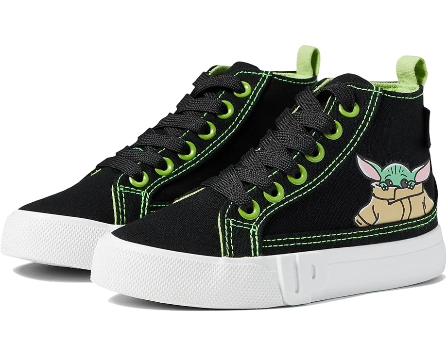 Keep your little one in stylish comfort with the Ground Up® Grogu High-Top sneakers.SKU: #9757626Canvas upper, lining, and insole.Lace-up closure with pull-on tab at heel notch.Yoda inspired design on quarter.Round-toe silhouette.Rubberized poutsole.Imported.Single shoe weight: 19 oz