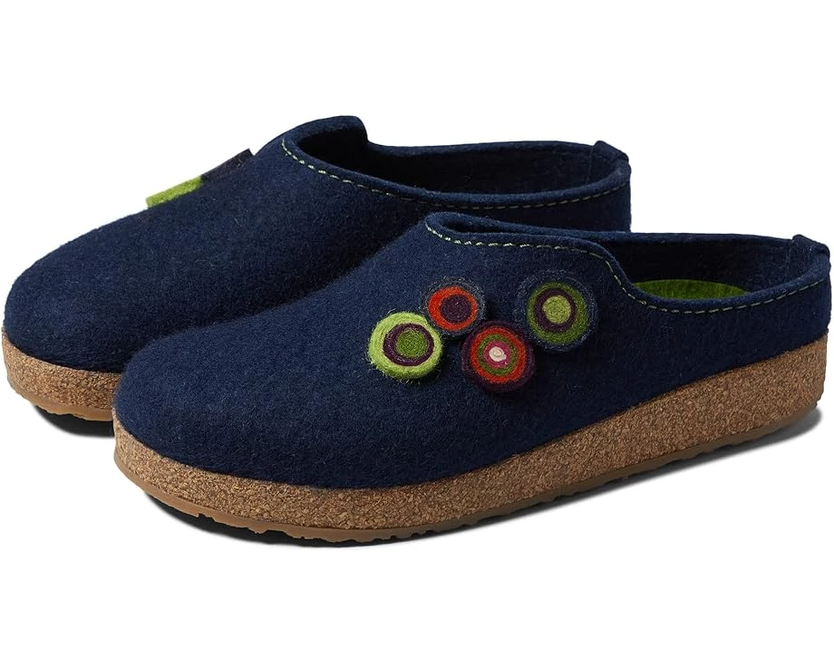 Keep up with the comfort without sacrificing style wearing the Haflinger® Chloe Slippers. SKU: #9561904Wool felt upper. Textile lining and insole. Round toe silhouette and slip-on style closure. Arch support and contoured footbed. Cork and latex platform midsole. Swirled circular appliqués.Rubber outsole. Imported.Imported.Product measurements were taken using size EU 42 (US Men’s 9, Women’s 11), width Medium. Please note that measurements may vary by size.Measurements: