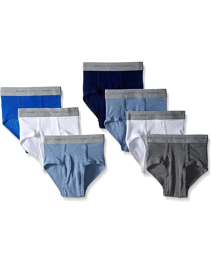 White, Dyed Colors: 100% Cotton; Heathers, Stripes: 75% Cotton, 25% PolyesterSKU: #9635688Viet NamMachine WashTag less boxer briefs and briefs – no scratchy labelHanes comfort flex waistband – soft and stretchableHanes briefs are guaranteed not to ride upPreshrunk for a better fitAvailable in a convenient 7-pack can include solids, prints or a combination of both. Colors shown in image is example of potential assortment you may receiveIf you’re not fully satisfied with your purchase, you are welcome to return any unworn and unwashed items with tags intact and original packaging included.