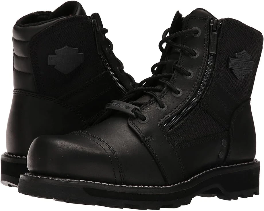 The tough Harley-Davidson® Bonham riding boot will keep you in style and steady on your feet with whatever the road throws your way.SKU: #8736180Part of the Harley-Davidson Riding Collection that is “Built for the Road.”Water-resistant full grain leather and Cordura® mesh upper.Traditional lace-up system with metal eyelets for a secure fit.YKK® dual locking inside and outside zippers.Goodyear® welt construction.Full length cushion sock lining for underfoot comfort.Lightweight EVA midsole with rubber outsole.Durable rubber outsole with pronounced rubber lugs for excellent traction. Imported.Product measurements were taken using size 12, width D – Medium. Please note that measurements may vary by size.Weight of footwear is based on a single item, not a pair.Measurements: