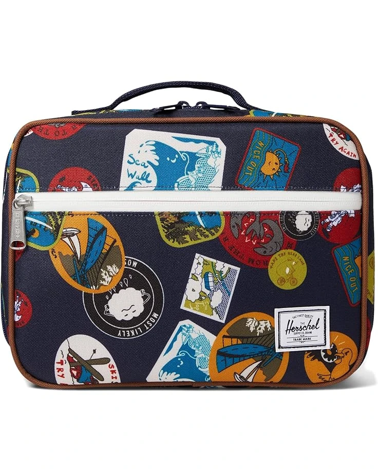 Made for everyone, everywhere you go this Herschel Supply Co. Kids™ Pop Quiz Lunch Box is designed to suit your essential food needs.SKU: #9624095Polyester construction.Main compartment with double zipper closure tabs.One external zippered front pocket.Top handle.Branding patch.Poly ethylene-vinyl acetate lining.Imported.This product may have a manufacturer’s warranty. Please visit the manufacturer’s website or contact us at [email protected] for full manufacturer warranty details.Measurements:
