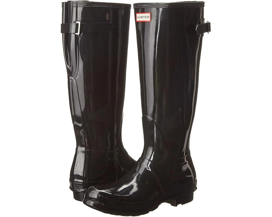 Note: Select your US size. Please be advised, the product and box will display UK, US and Euro sizing. For US sizing, both men’s and women’s sizing is displayed. Men’s sizing is represented by “M” and women’s sizing is represented by “F”. SKU: #8426344Every storm has a silver lining because you can step out in the classic Hunter™ Original Back Adjustable Gloss boots.This product is certified vegan and is constructed with no animal parts for materials or bindings. Vulcanized natural latex construction provides a seamless waterproof shell.Ideal for walking through wet grass or fields as well as walking in wet conditions in the city.Pull-on design.Adjustable buckled strap at back of shaft.Signature Hunter logo on the front. Nylon lining dries quickly. Cushioned footbed with multilayered sponge insole. Rubber sole.This style mirrors the iconic Original Tall with the addition of an expandable gusset at the back. This is perfect for a wider calf, these classic boots offer ease of movement and adjust from the traditional tailored Hunter fit to a more relaxed shape when the gusset is fully extended. Handcrafted from natural rubber, the Original Adjustable boot is fully waterproof.Imported.Circumference measurements: 15 inches and fully extended 17.5 inches.Product measurements were taken using size 9, width M. Please note that measurements may vary by size.Measurements: