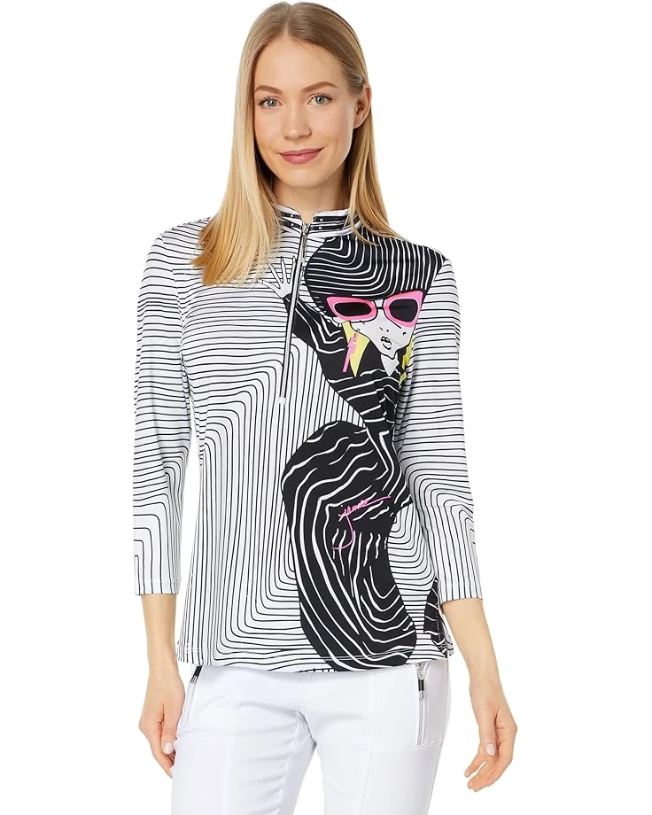 Exude style and make a stylish statment wearing ‘Jamie Sadock® Ziggy Print Top.SKU: #9874703Relaxed fit.Mock neck.Half-zip closure.Three-fourth sleeves.Printed allover with quirky design on left front.Staright hemline.92% polyester, 8% spandex.Machine wash gentle setting and perma press dryer setting.Imported.