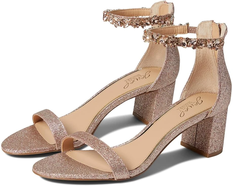 Light up the night, or any formal event this season, with the Jewel Badgley Mischka® Catalina.SKU: #9542926Open toe, mid heel design.This style would make a great bridesmaid, wedding, or mother of the bride shoe!Rhinestone-embellished ankle strap with back zip closure.Man-made upper and lining.Lightly padded, man-made insole.Man-made outsole with wrapped, block heel.Imported.Product measurements were taken using size 9, width M. Please note that measurements may vary by size.Measurements: