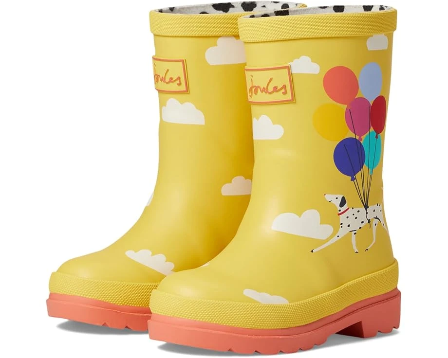 Lightweight and durable, these playfully-patterned natural rubber Joulesâ„¢ Kids Welly boots were made for wet weekends and dreary days!SKU: #9390923Calf-height boots boast an easy pull-on style and feature reflective back markings. Soft fabric lining for improved all-day wear.Removable cushioned insole for additional comfort.Grip-textured rubber outsole provides a pleasurable walking experience. Imported.Product measurements were taken using size 2 Little Kid, width M. Please note that measurements may vary by size.Weight of footwear is based on a single item, not a pair.Measurements: