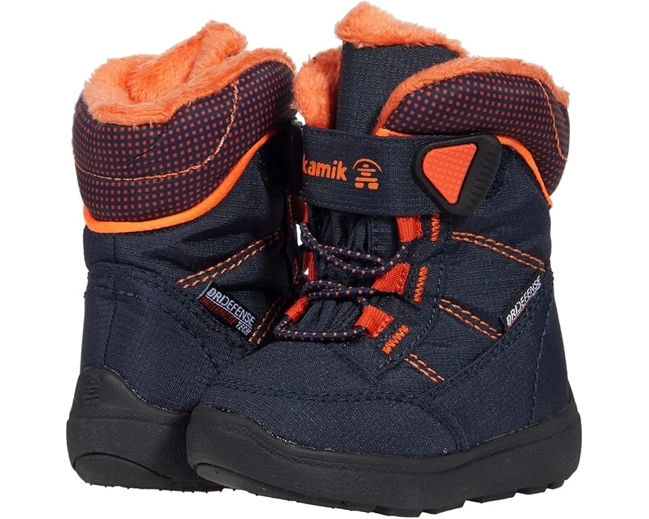 Brave the elements all season long in the Kamik® Kids Stance 2. SKU: #9534161Comfort rating -25°F.Waterproof DriDefense membrane nylon upper.Padded felt collar and gusset tongue.Foam and fleece insulation.Moisture-wicking fleece lining.Bungee lace with adjustable top hook-and-loop strap.Comfort footbed with boa lining.NERO cold weather outsole.Multi-directional lug design to offer better traction.Man-made upper, insole, and sole.Faux shearling lining.Imported.Product measurements were taken using size 5 Toddler, width M. Please note that measurements may vary by size.Measurements: