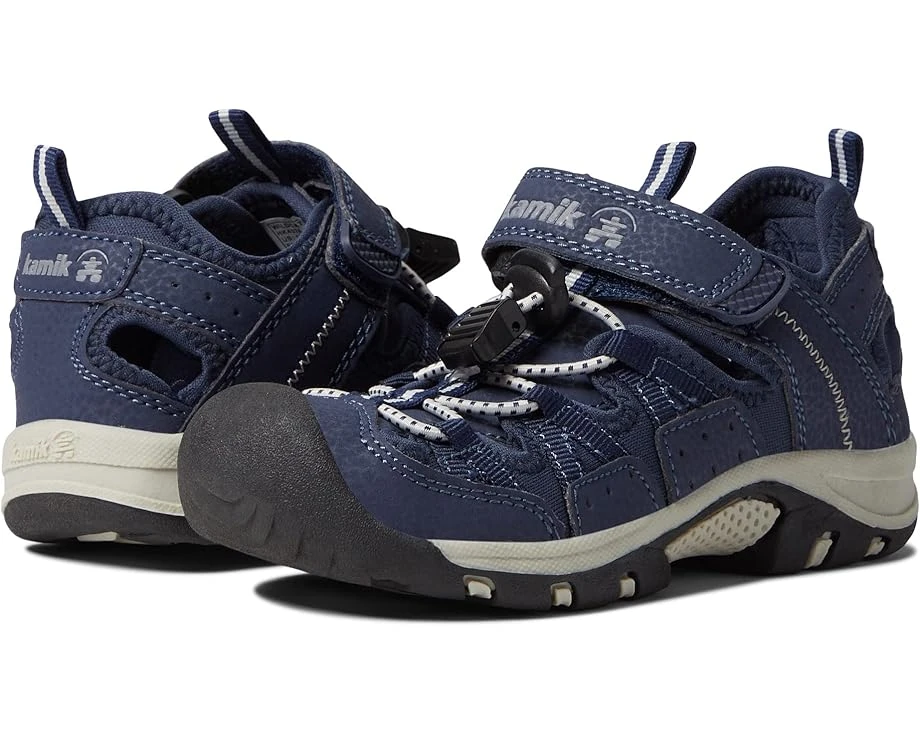 Help your adventurer roam free in the dependable Kamik® Kids Wildcat sandals. Low-profile hiking sandal constructed in a breathable mesh upper with faux-leather overlays. SKU: #9334666Closed-toe construction features a rubber mud guard toe cap for added protection. Made with an adjustable toggle closure, hook-and-loop ankle strap, and a padded collar with a pull tab heel and tongue for easy entry. Constructed with a moisture-wicking lining and an odor-control footbed to ensure long-lasting comfort. A durable rubber outsole provides grip and traction. Imported.Product measurements were taken using size 5 Big Kid, width M. Please note that measurements may vary by size.Measurements: