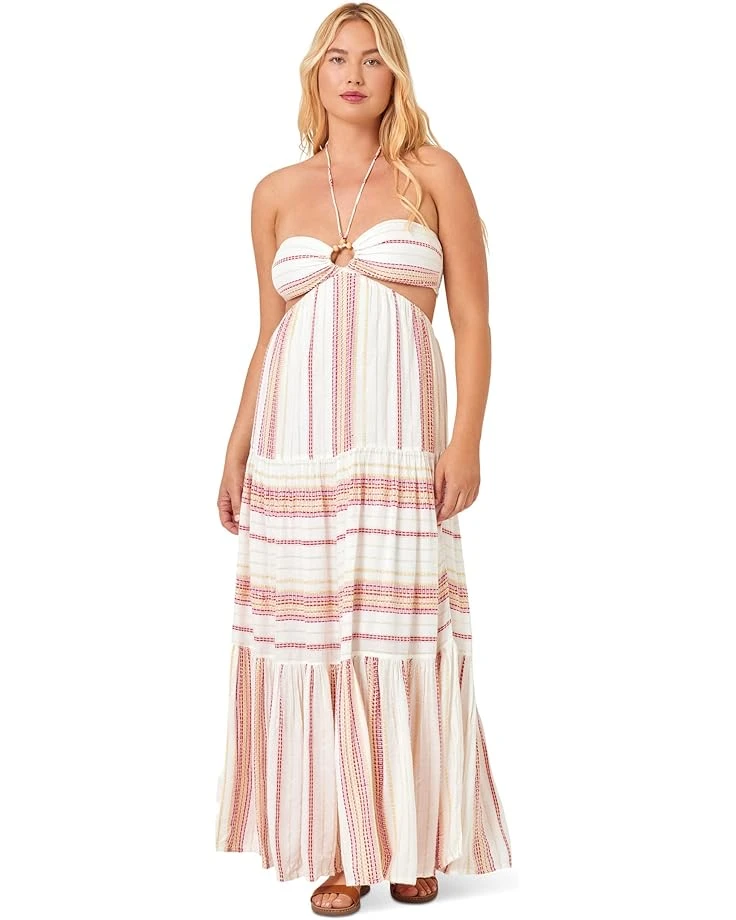 Get a comfortable and gorgeous look for your pool party wearing the L*Space® Jenevieve Dress.SKU: #9877499Halter neckline and sleeveless construction.Tiered skirt and floor-length hemline.Allover striped pattern.97% nylon, 3% spandex.Machine washable.Imported.If you’re not fully satisfied with your purchase, you are welcome to return any unworn and unwashed items with tags intact and original packaging included.