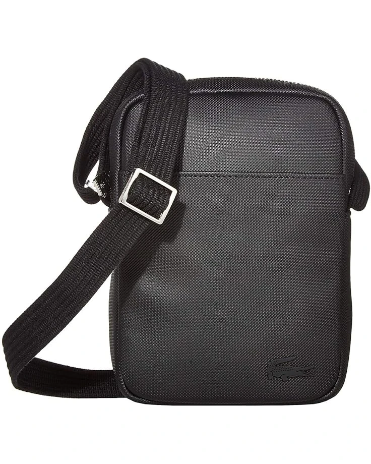 The perfect on-the-go style to elevate your dapper style, the zip PVC Lacoste™ Classic Slim Vertical Camera Bag with adjustable crossbody strap. SKU: #9291186Signature logo detail at front with exterior front slip pocket with flat bottom.Polyester lining features interior zip and slip pockets.Imported.Measurements: