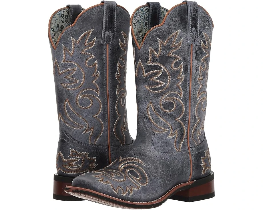The elegant Eva boot will elevate your Western style.SKU: #9091188Rich leather upper with a burnished finish.Features intricate Western stitching on the shaft and foot. Sturdy pull tabs for easy entry.Printed textile lining offers added comfort and breathability. Cushioned man-made footbed provides lasting comfort.Broad square toe with double-welt stitching.Stockman heel.Cowboy approved outsole provides excellent traction and stability. Imported. Product measurements were taken using size 9, width B – Medium. Please note that measurements may vary by size.Measurements: