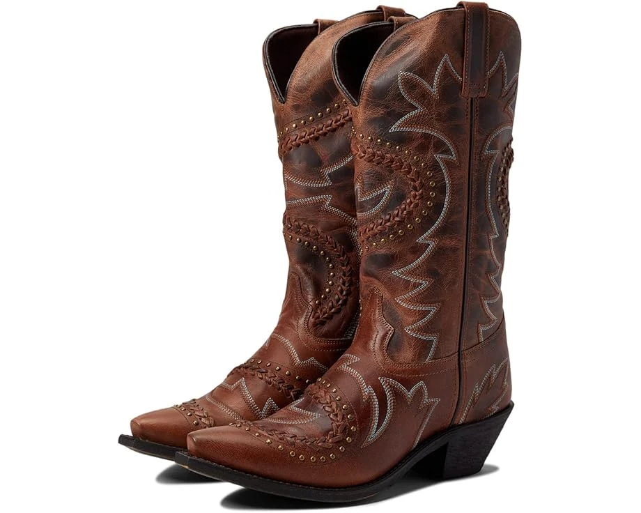 Step out in comfort and luxury wearing the stylish Laredo® Twistz boots.SKU: #9677761Leather upper.Man-made lining and insole.Pull-on closure.Snip-toe design.Pull tabs om shaft for easy wear.Small heel tab.Stud detailing on vamp and shaft.Brand logo on bottom outsole.Man-made outsole.Imported.Product measurements were taken using size 9, width B – Medium. Please note that measurements may vary by size.Weight of footwear is based on a single item, not a pair.Measurements: