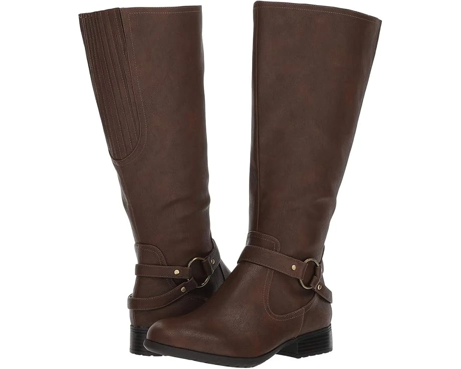 The LifeStride® X-Felicity is a classic riding boot that you’ll wear comfortably for years to come.SKU: #9128560Wide-calf riding boots feature a faux-leather upper and round toe.Decorative ankle straps with stud and ring adornments.Interior ankle zip for easier on and off.Stretch knit inset at the back calf offers a more accommodating fit.Soft System® comfort package includes a high-rebound foam insole for cushioning, arch and foot support for stability, and a flexible sole to reduce force as you walk.Traction outsole provides extra stability.Imported.Product measurements were taken using size 8, width M (B). Please note that measurements may vary by size.Measurements: