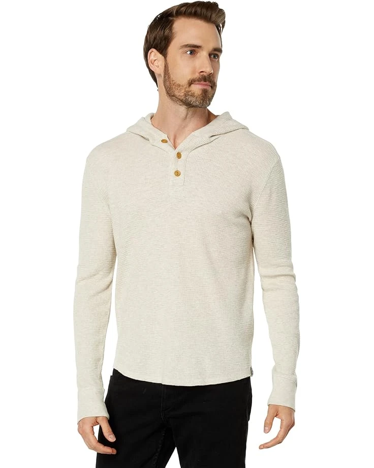 Lucky Brand® Garment Dye Thermal Hoodley can be layered over a T-shirt during the chilly weather keeping him warm and comfy.SKU: #9831736Attached hood with a buttoned front placket.Long sleeves with panel cuffs.Ribbed textured-knit design.Intended to hit at the hip.Signature brand detailing on the hemline.Shirttail hemline.100% cotton.Machine wash, tumble dry.Imported.Product measurements were taken using size MD. Please note that measurements may vary by size.Measurements: