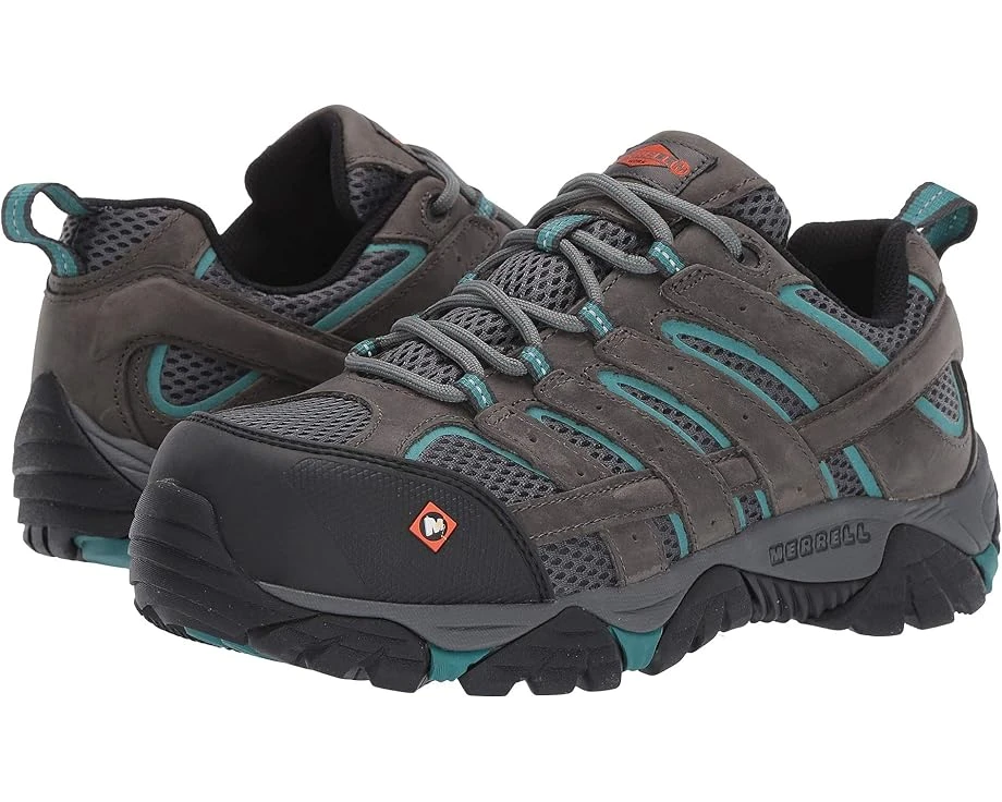 Find total protection on-and-off the job with comfort from the Merrell® Work Moab Vertex Vent Composite Toe sneakers.SKU: #9250946Part of the Merrell Work Collection.Waterproof full grain leather combined with textile uppers.Lace-up work shoe with a lightweight, non-metallic composite safety toe that meets ASTM F2413-18 I/75 C/75 EH (Electrical Hazard) safety standards.M Select™ DRY waterproof membrane keeps feet protected from outside elements. Features external stability arms with spray rubber for added security and durability.Breathable mesh lining.COMFORTBASE™ contoured design footbed with breathable foam cradles your foot in all-day comfort.Molded nylon arch shank supplies flexible support. Air cushioning in the heel absorbs impacting shock and adds stability. M Select™ GRIP rubber outsole with 5mm lug depth offers excellent traction and grip on various surfaces. Heat resistant outsole protection for brief periods of contact that meet or exceed 500 °F.Oil and slip resistant rubber outsole meets Mark II tested standard.Imported. Product measurements were taken using size 9, width M. Please note that measurements may vary by size.Measurements: