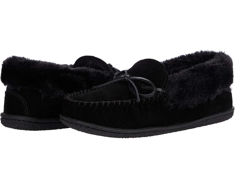 Live your best life in the Minnetonka® Camp Collar Moc slippers.SKU: #9546270Slip on style.Hardsole moccasin.Round toe.Leather lace tie-up.Leather upper.Faux shearling lining.Leather and rubber outsole.Imported.Product measurements were taken using size 8, width M. Please note that measurements may vary by size.Measurements: