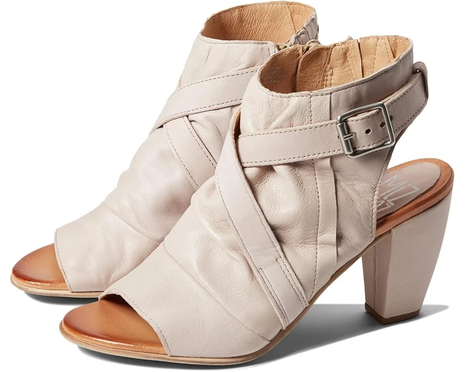 Give your chic wardrobe styling an upgrade in the Miz Mooz® Packer.SKU: #9721259Inside zipper closure.Decorative crisscross strap buckle closure.Round, open toe silhouette.Covered heel.Leather upper, lining and insole.Rubber outsole.Imported.Product measurements were taken using size EU 40 (US Women’s 9-9.5), width B – Medium. Please note that measurements may vary by size.Weight of footwear is based on a single item, not a pair.Measurements: