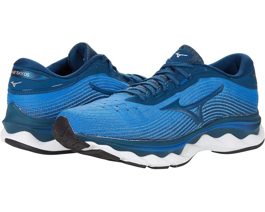 Look forward to your next run in the Mizuno® Wave Sky 5. Enjoy super cushioning and a stable ride with Wave® technology.SKU: #9497941Wave® technology offers energetic cushioning, support and a stable ride.X10 carbon rubber outsole provides long-lasting wear.MIZUNO ENERZY CORE: Delivering the most resiliency and softness. It improves comfort and adds spring to drive optimum performance.MIZUNO ENERZY (FOAM): Offering versatility in its application, while still maintaining softness and resilience. It will help enhance performance capabilities.Traditional lace-up closure for a secure fit.Round toe silhouette.Padded tongue and collar for added support.Constructed of 100% man-made materials.Imported.Product measurements were taken using size 9, width D – Medium. Please note that measurements may vary by size.Weight of footwear is based on a single item, not a pair.Measurements: