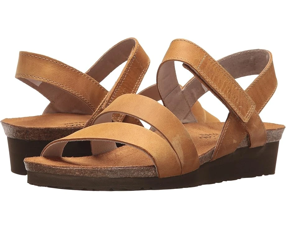 The Kayla sandal is from the Naot® Elegant Flats Collection.SKU: #9013384Embrace the enchanting shade of graceful comfort in the Naot® Kayla – Wide.A three-strap sandal with an adjustable quarter strap features hook-and-loop fastener on its ankle strap.Natural leather upper “breathes” to keep the foot fresh.Shock-absorbent footpad also absorbs perspiration. Naot footpads possess a supportive anatomical structure that encourages a natural and correct posture.Naot anatomical supports distribute the weight of the body equally over the entire foot, massaging and releasing pressures caused by other parts of the body.Flexible, shock-absorbent sole enables the foot to move gently and continuously.Imported.Product measurements were taken using size EU 37 (US Women’s 6), width W. Please note that measurements may vary by size.Measurements: